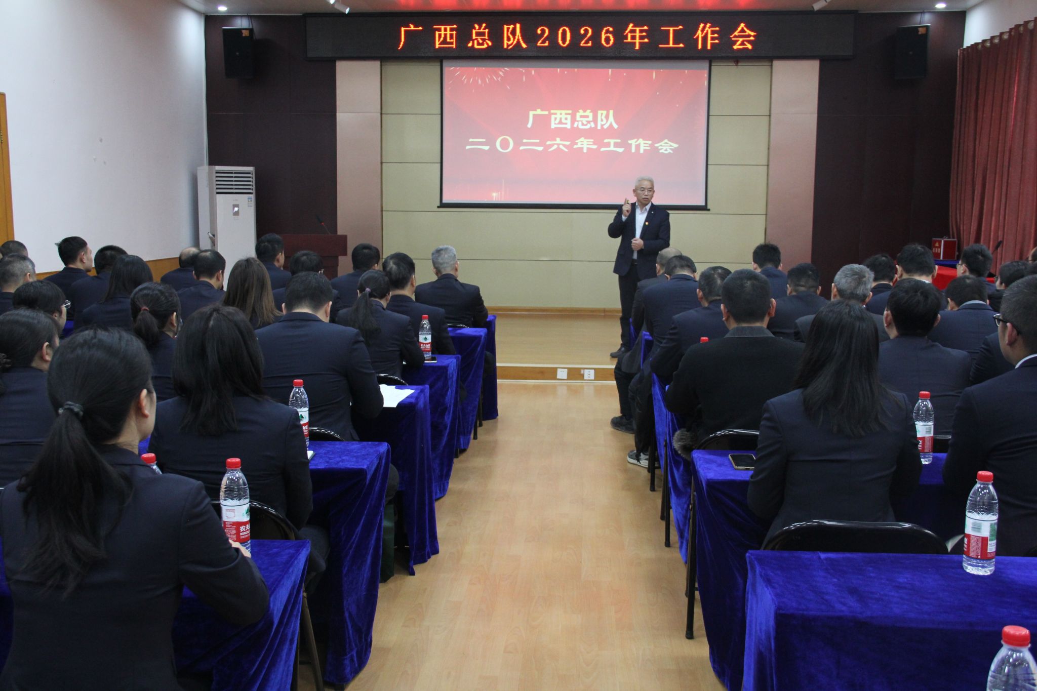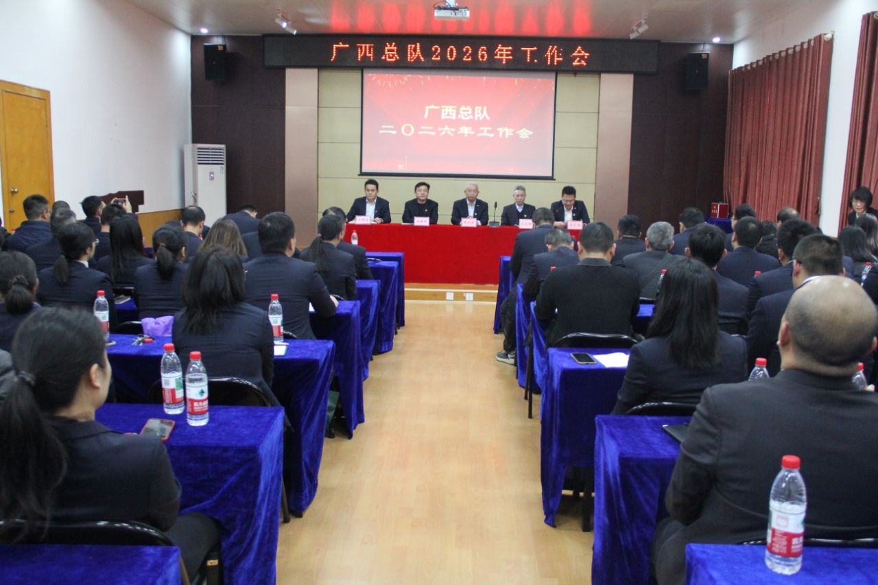 2月3日,广西总队召开了2026年工作会,全面回顾过去一年的工作成效,系统部署新一年重点任务。会议由党委副书记、纪委书记王志刚主持,党委书记、总队长贺行良在会上作了题为《凝心聚力攻坚 升级产业赋能 乘势而上谱写总队“十五五”发展新篇章》的工作报告。