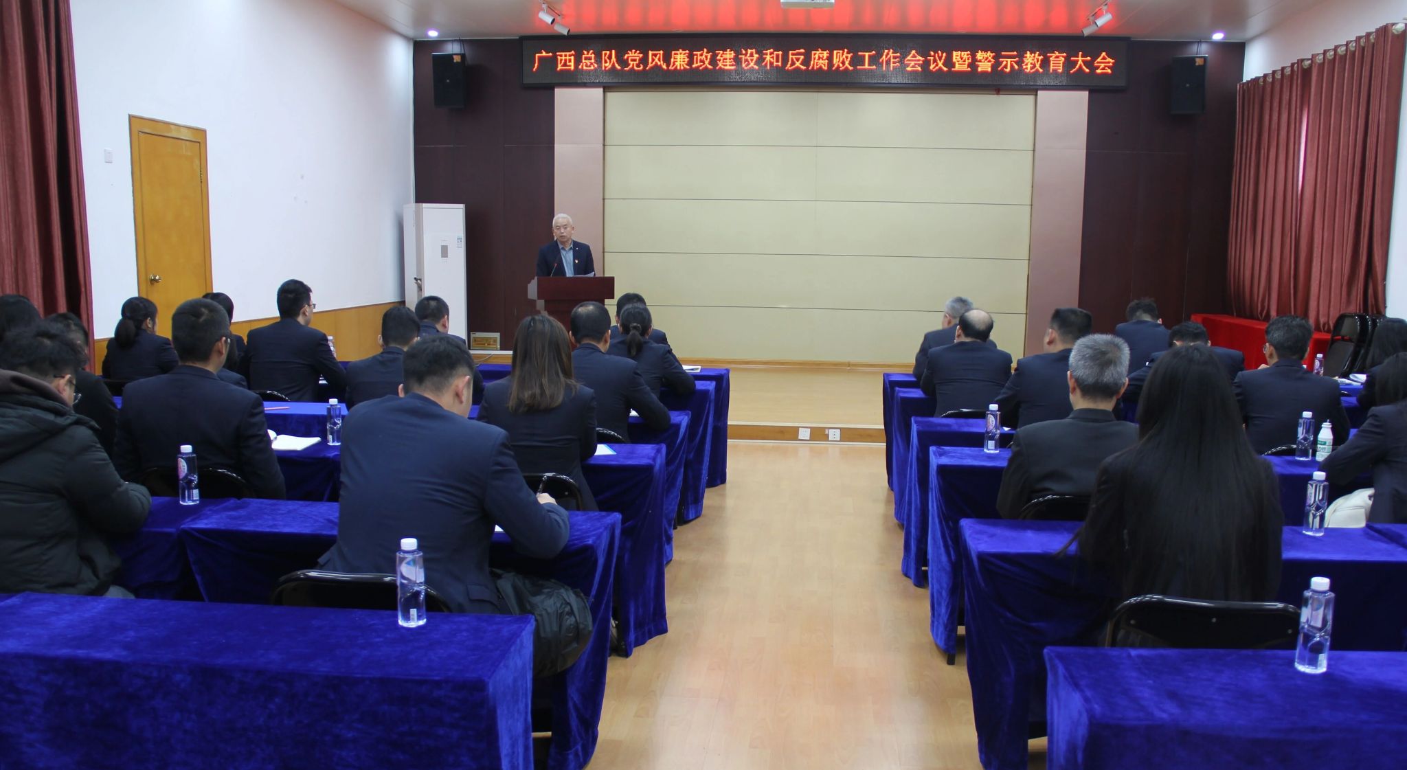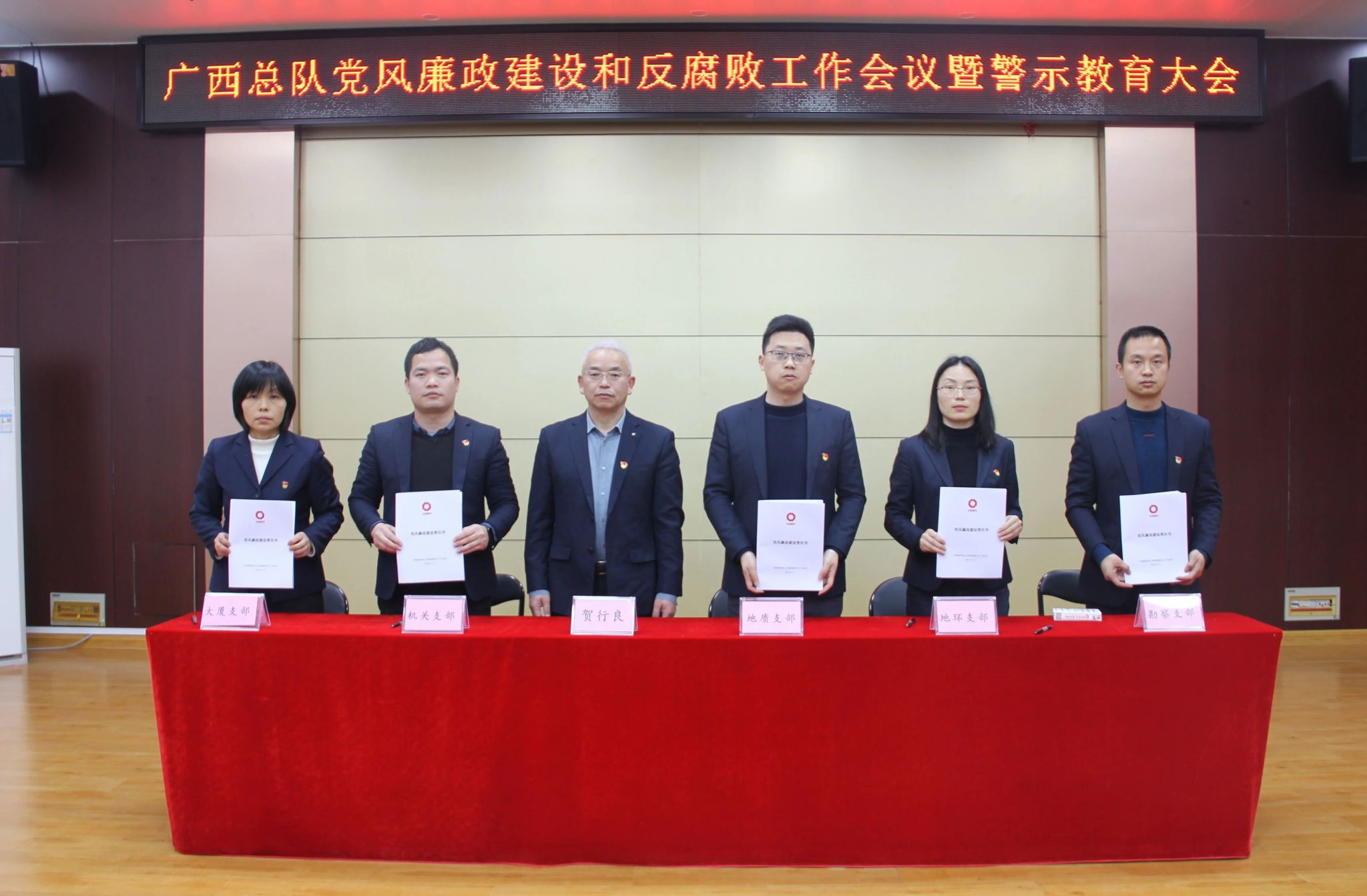 会议还组织观看了警示教育片《爱廉说》,开展了集体廉洁谈话,举行了《广西总队党风廉政建设责任书》签订仪式。